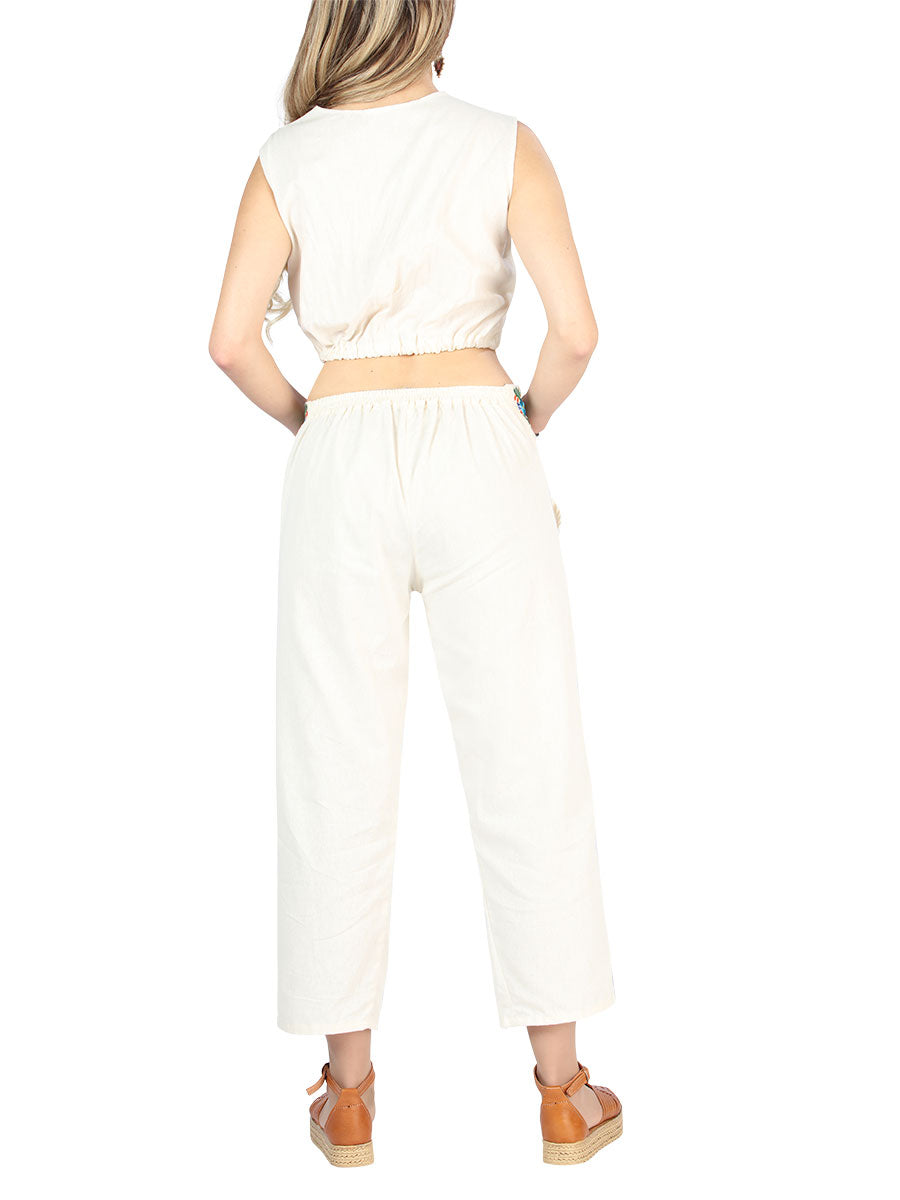 Artisanal Embroidered Set 100% Cotton Beige 604049